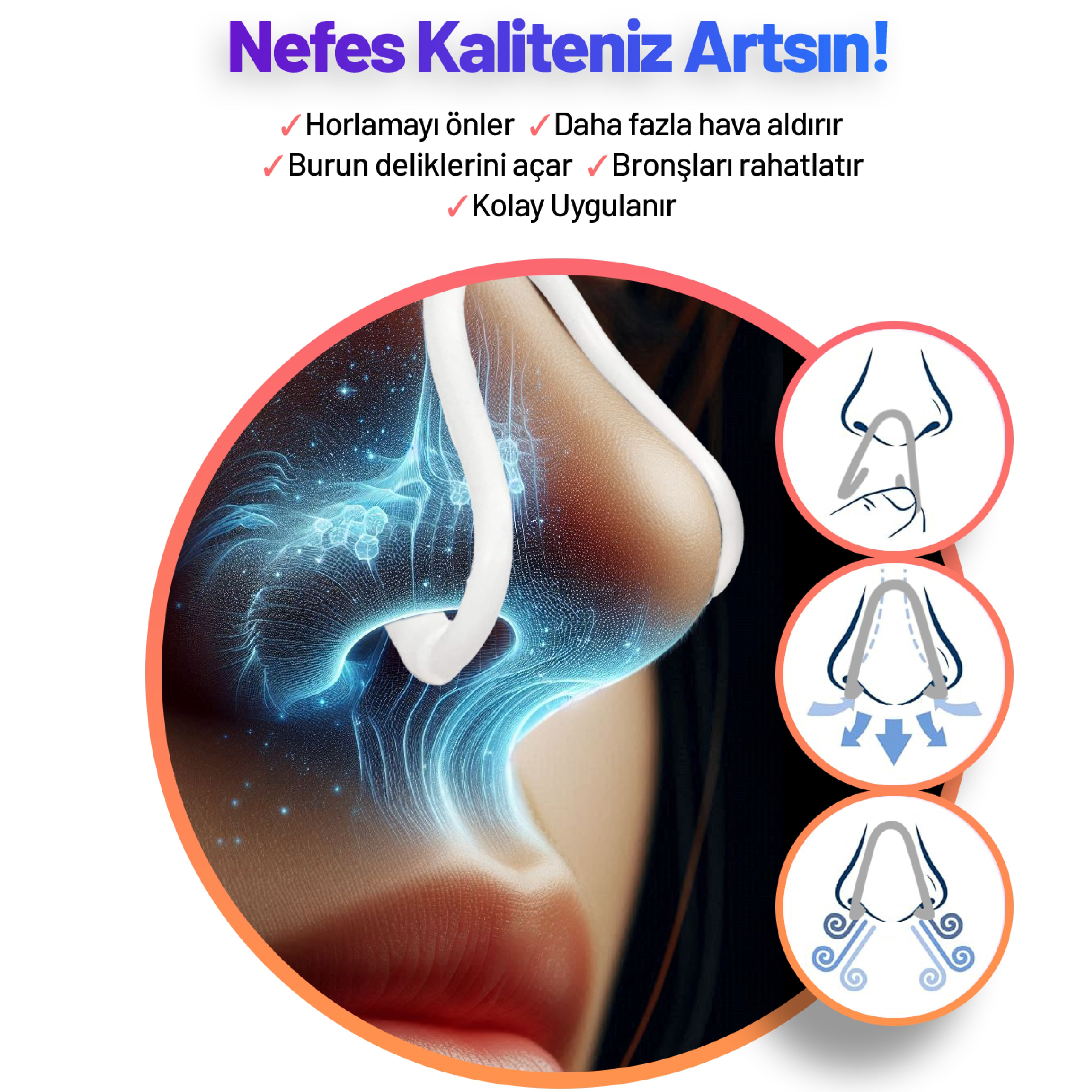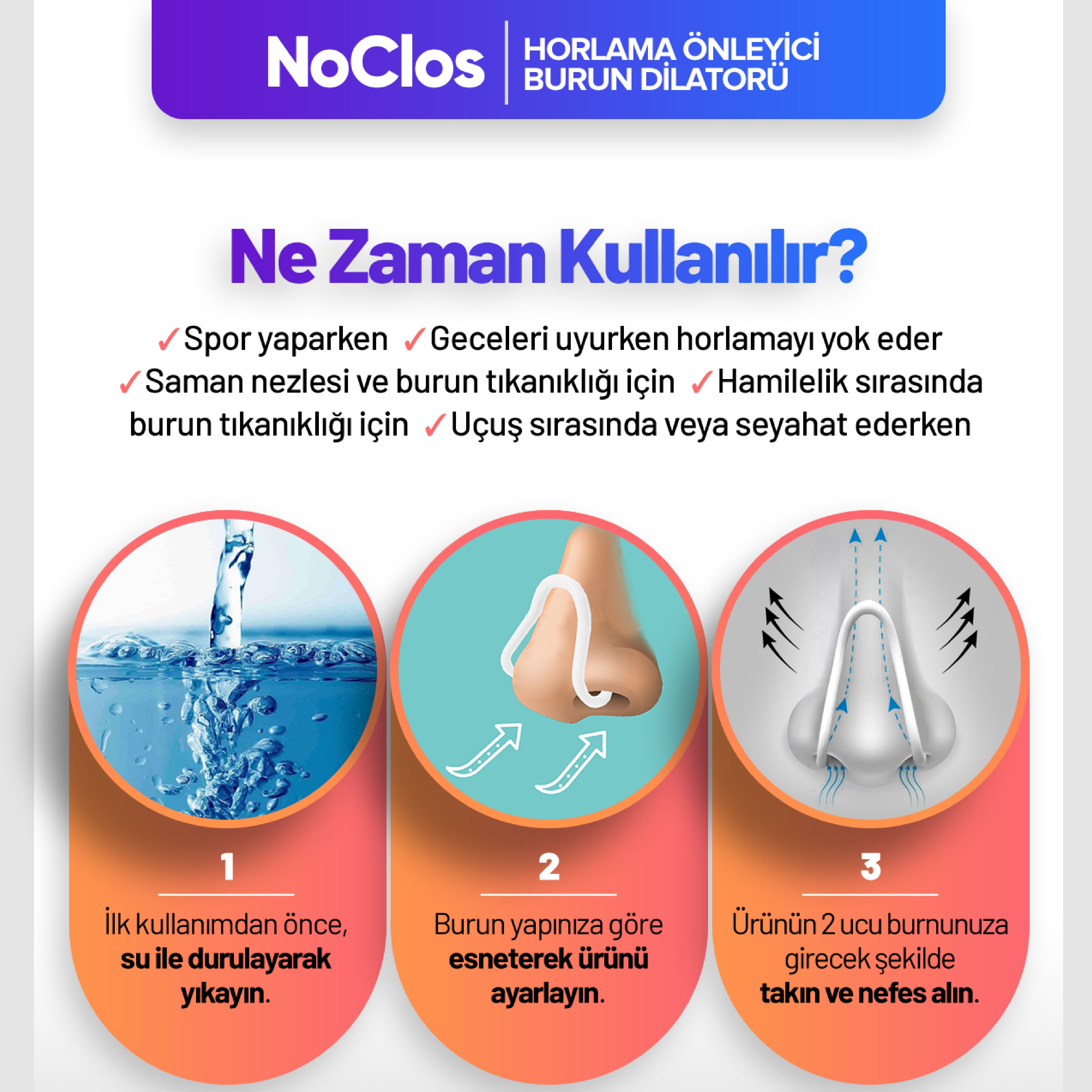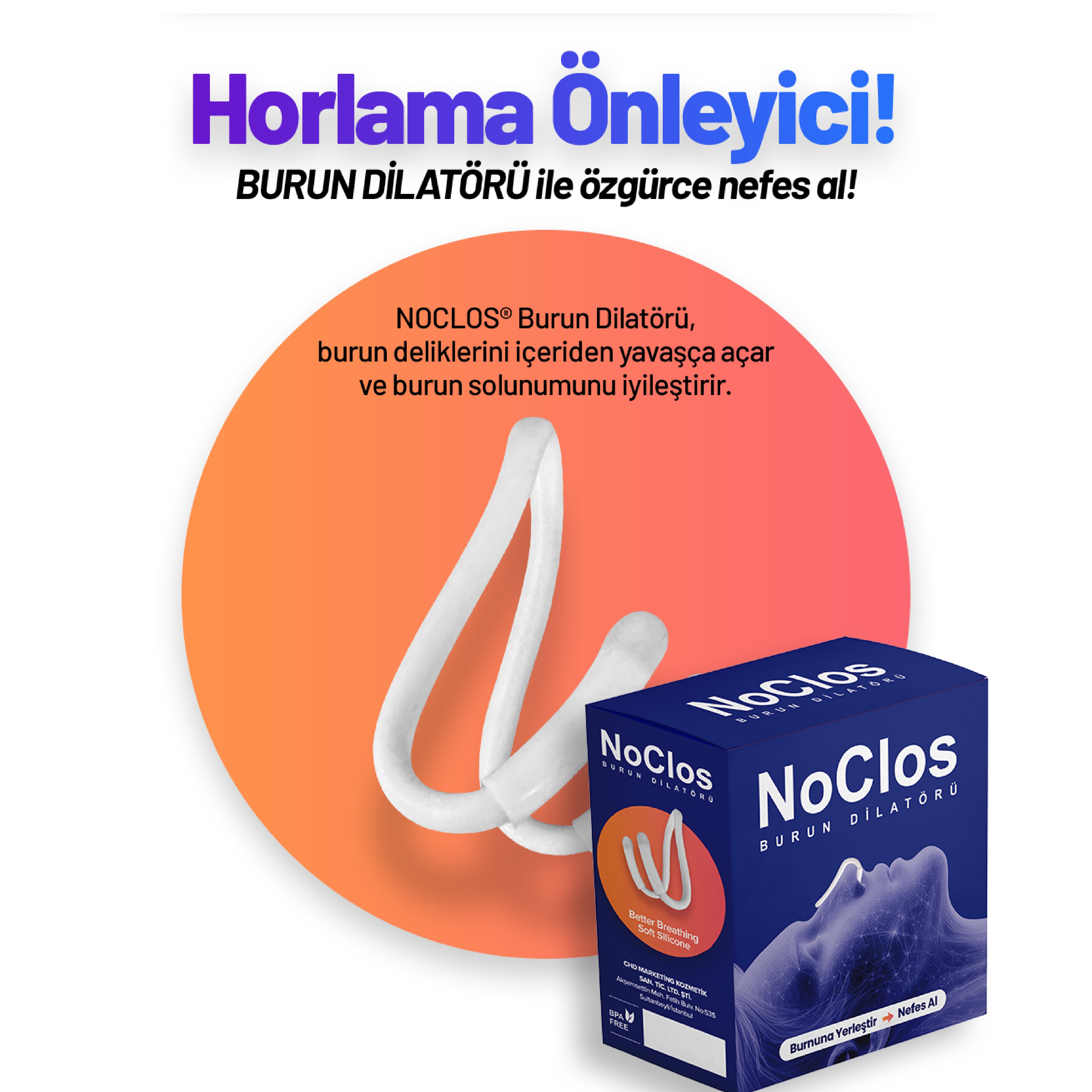Noclos, burun kanallarını anında genişleterek daha rahat nefes almanı sağlar. Uyku sırasında ya da gün boyu ferahlığı hisset!