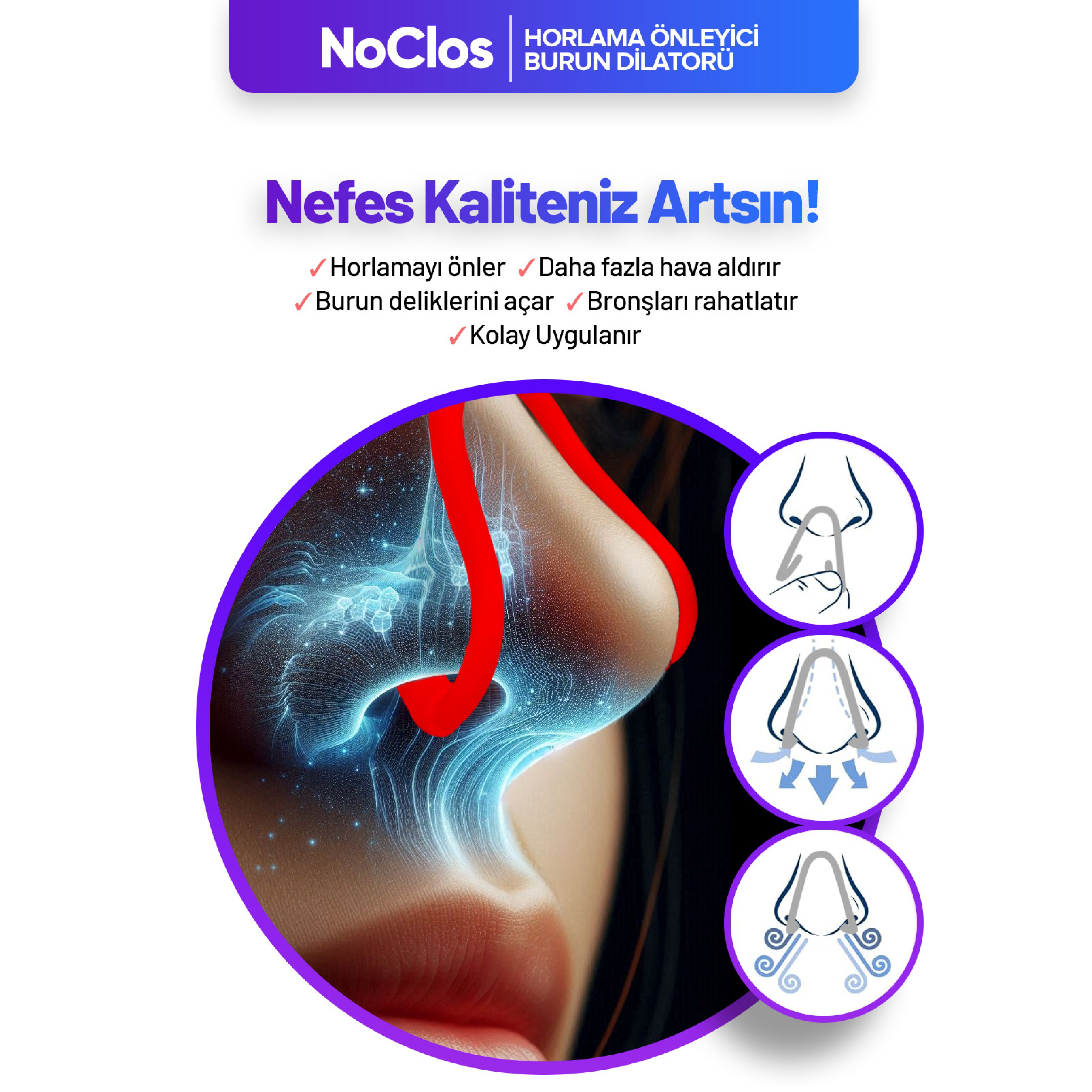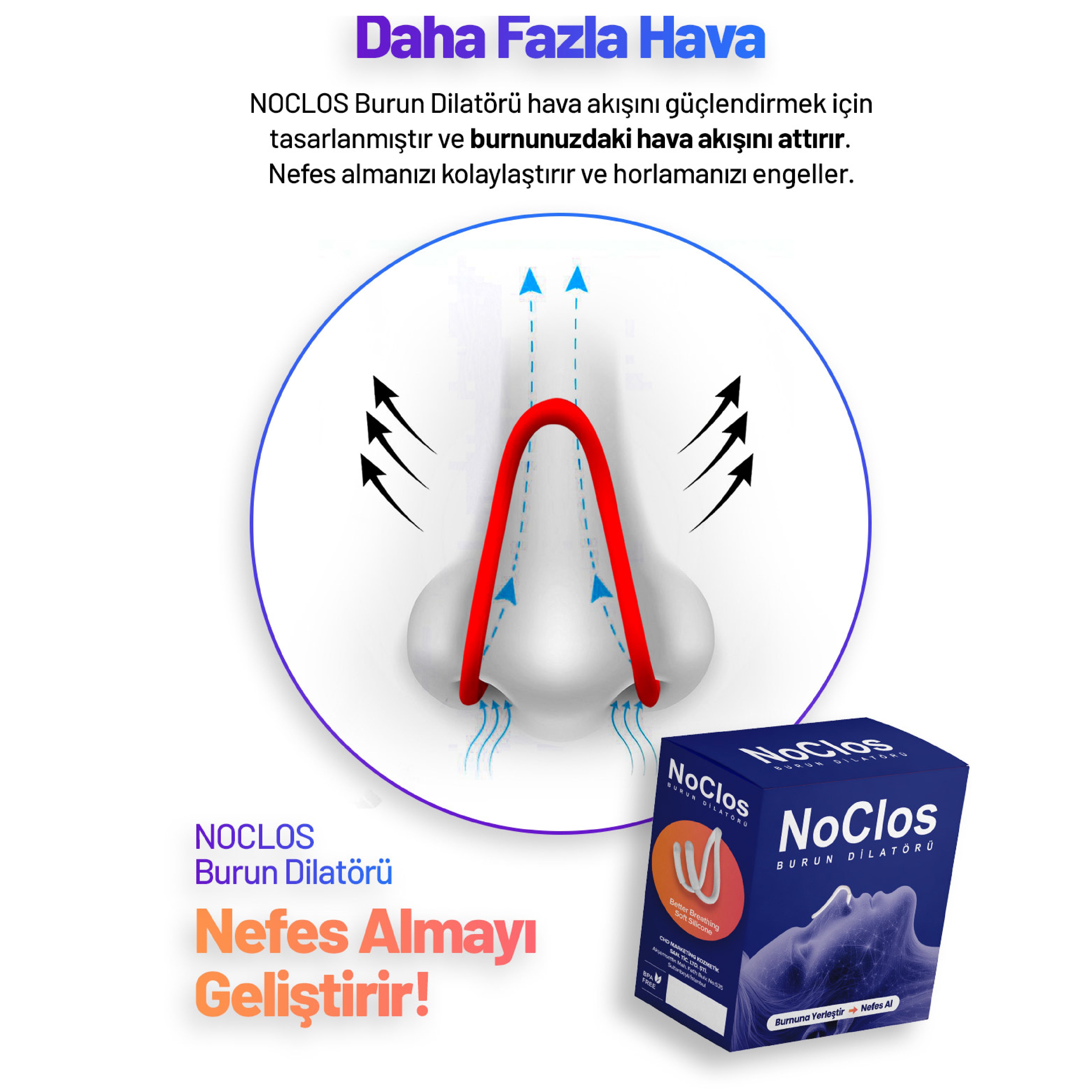 Noclos, burun kanallarını anında genişleterek daha rahat nefes almanı sağlar. Uyku sırasında ya da gün boyu ferahlığı hisset!